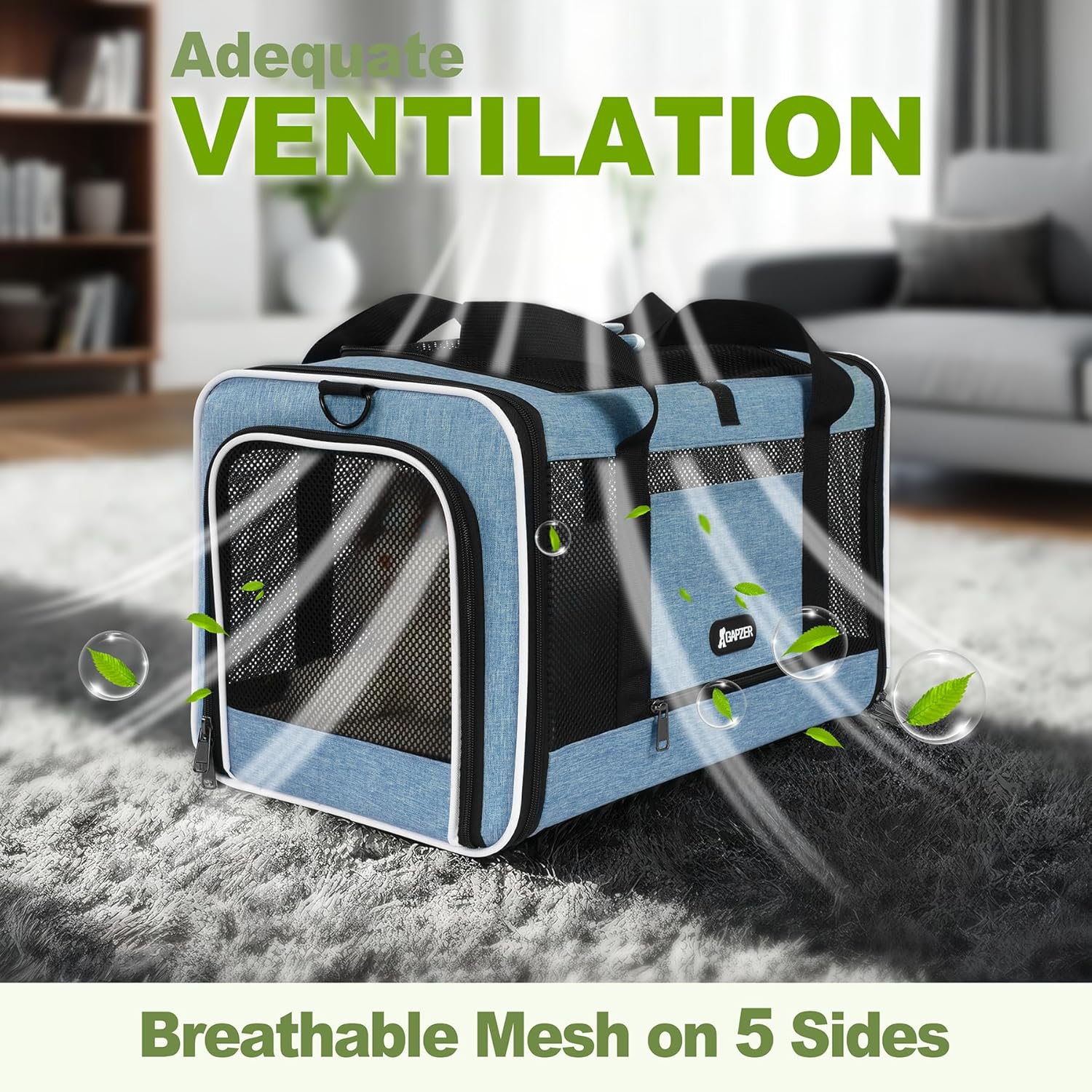 • Escape-Resistant - Self-locking zipper sliders prevent clever kitties from opening this animal carrying bag from the inside while traveling. Reinforced 600D oxford fabric prevents anxious cats or little dogs from claw damage