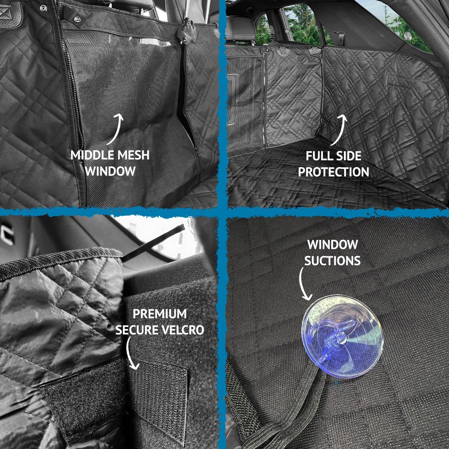 • Waterproof Layers: Ensure pet accidents or any spilled liquids from staining and absorbing into your cargo liner or seats. Each thick layer are made ultra-waterproof that resist any spills. For a quick cleanup, you can wipe the cover down with a damp cloth, or throw it in the washing machine for bigger messes.