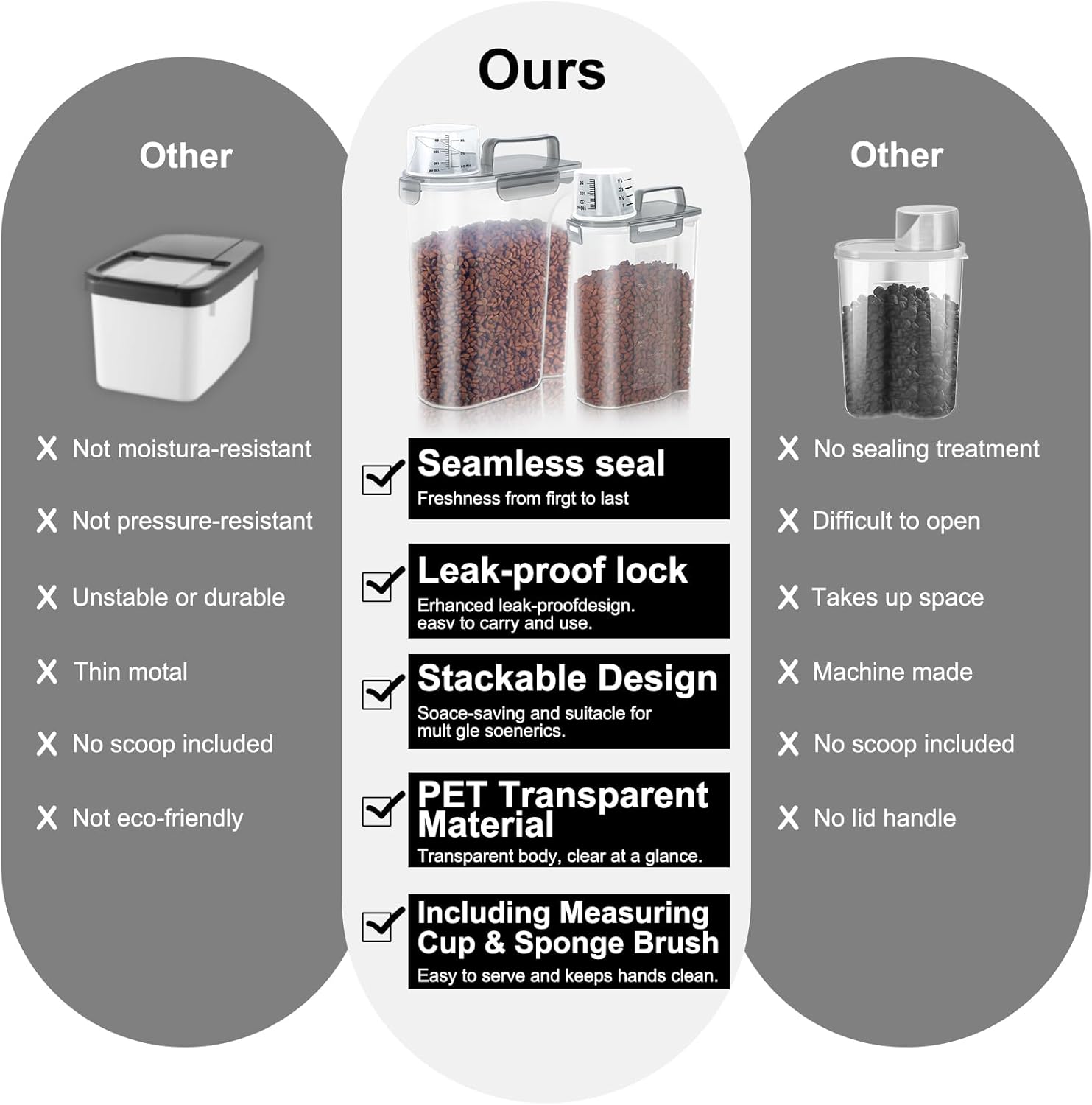 • MATERIAL: BPA-free durable plastic container-reusable and practical pet food storage container is made of BPA-free food-grade plastic.Safe for storing human food or pet food.Durable enough,long-lasting,easy to clean,transparent body,food can be seen at a glance.