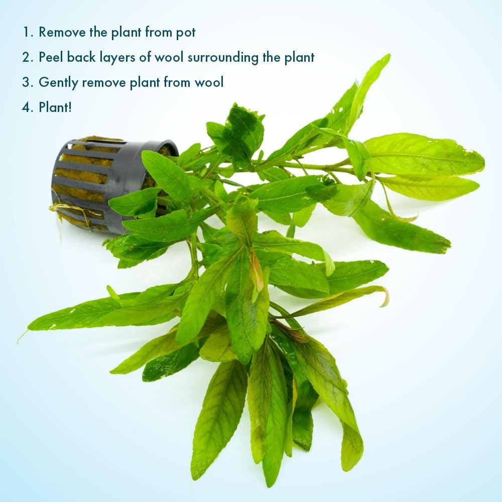 • Ships potted with rooted stems that are ready for trimming and replanting—each piece can be arranged in clumps or rows to design your preferred aquascape rhythm.