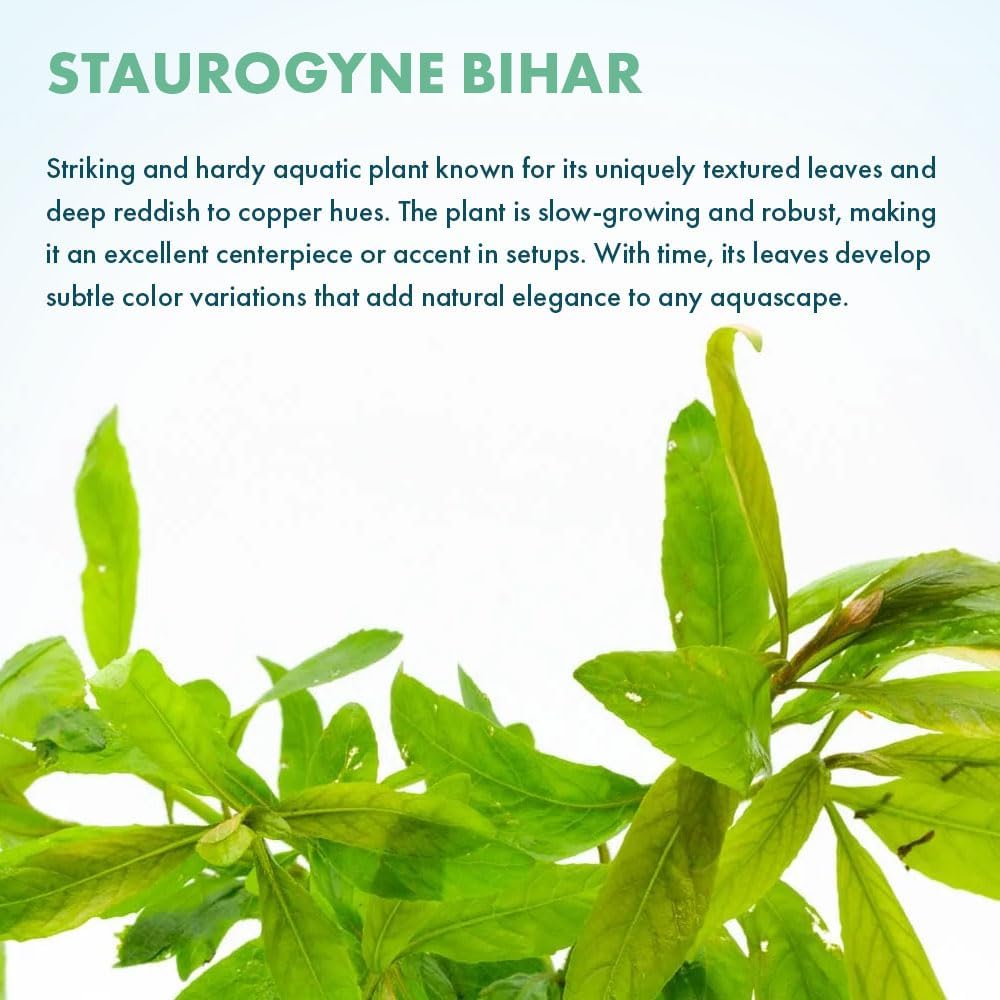 • Staurogyne Bihar features rich olive green stems and dense foliage, ideal for creating structured contrast and textured layering in the foreground or midground of aquascaped tanks.