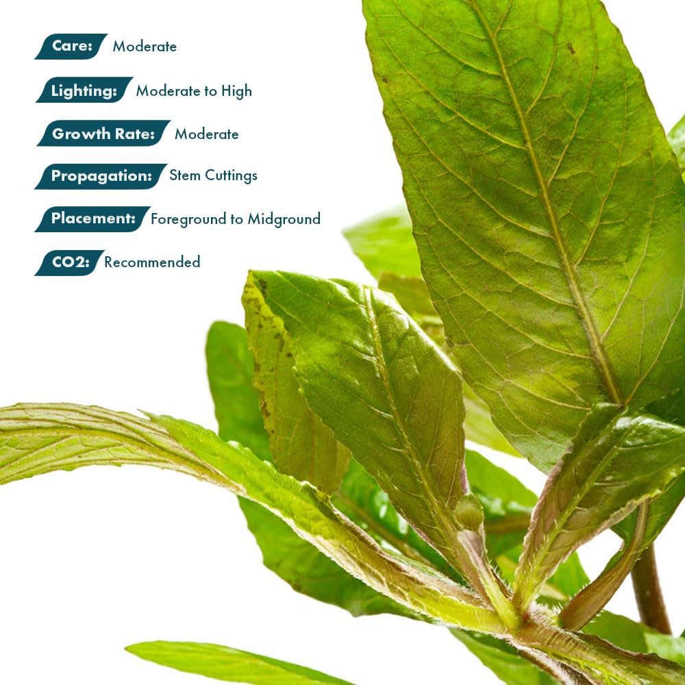 • Care Requirements – Thrives in Moderate to High Light; 8–10 hrs/day – COâ‚‚ Recommended – Propagates via Stem Cuttings – Grows 10–20 cm Tall in Nutrient Substrate with Regular Maintenance.