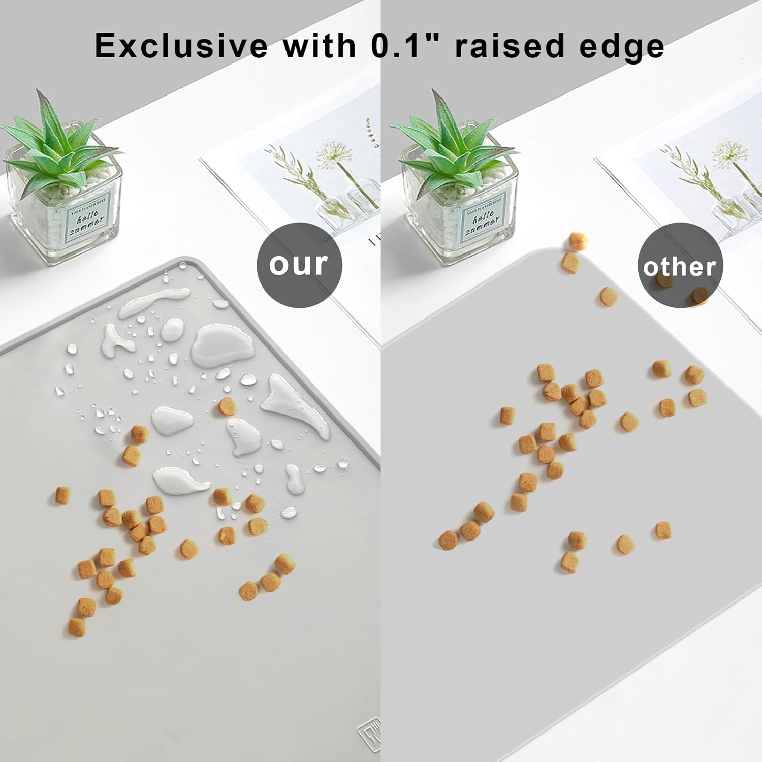 KVK Dog Water Mat 2-Pack 20×16in - Silicone Dog Mats for Food and Water, Non-Slip Pet Feeding Mat for Floors, Waterproof Cat Bowl Mats to Prevent Spills -Dark Gray & Silver Gray