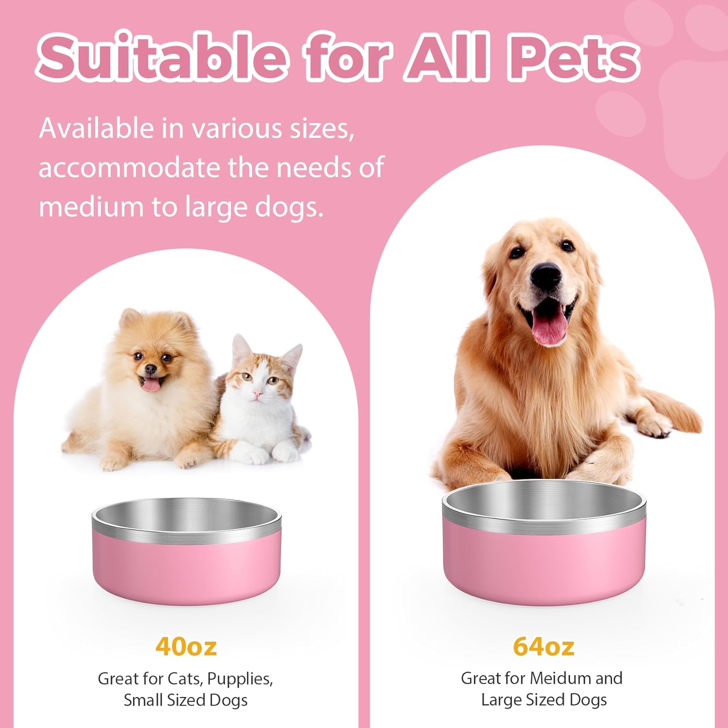 LIANLAI Dog Bowls, Rust-Resistant Stainless Steel Dog Bowls, Non-Slip Double-Walled Pet Dishes, Dishwasher Safe (Pink,40 oz)