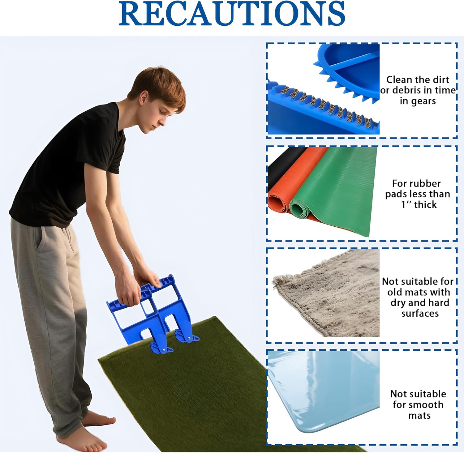 • 【Important Notes】Please be aware that our Mat Movers Tool has usage limitations in certain conditions. It may not perform effectively if the plastic teeth are clogged with dirt or debris, as this can reduce grip strength. Additionally, the tool is not suitable for old, dry, hard mats or smooth surfaces, as grip may not hold properly. Always ensure that mats are in the appropriate condition for optimal performance