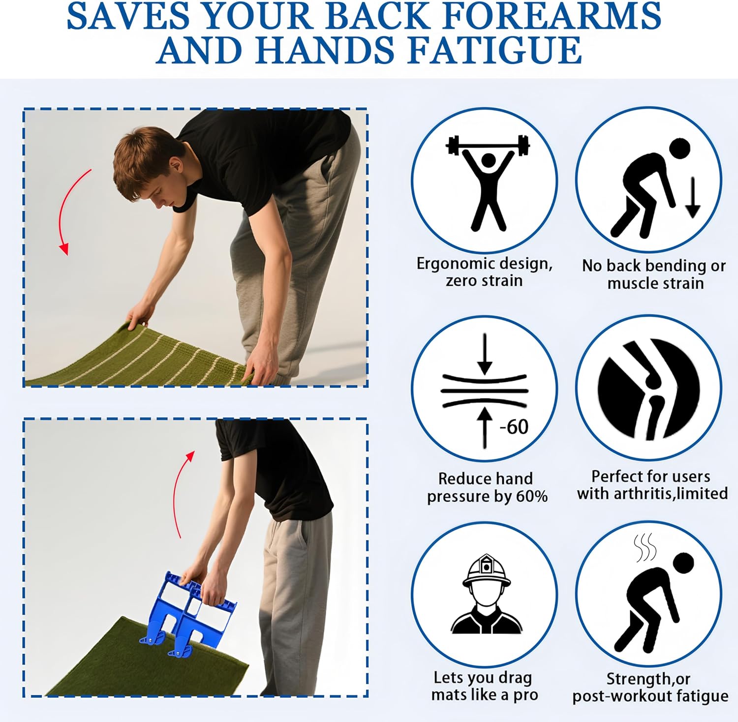• 【Effortless Lifting , Portable & Easy to Store】Lightweight and powerful, this pair of mat movers fits easily in your toolbox or storage bin. Always be ready to lift and position mats without hassle or additional help. Whether you're cleaning a stall or rearranging gym mats. Our Mat Movers Tool allows you to complete mat relocation tasks in record time, offer a significant efficiency boost