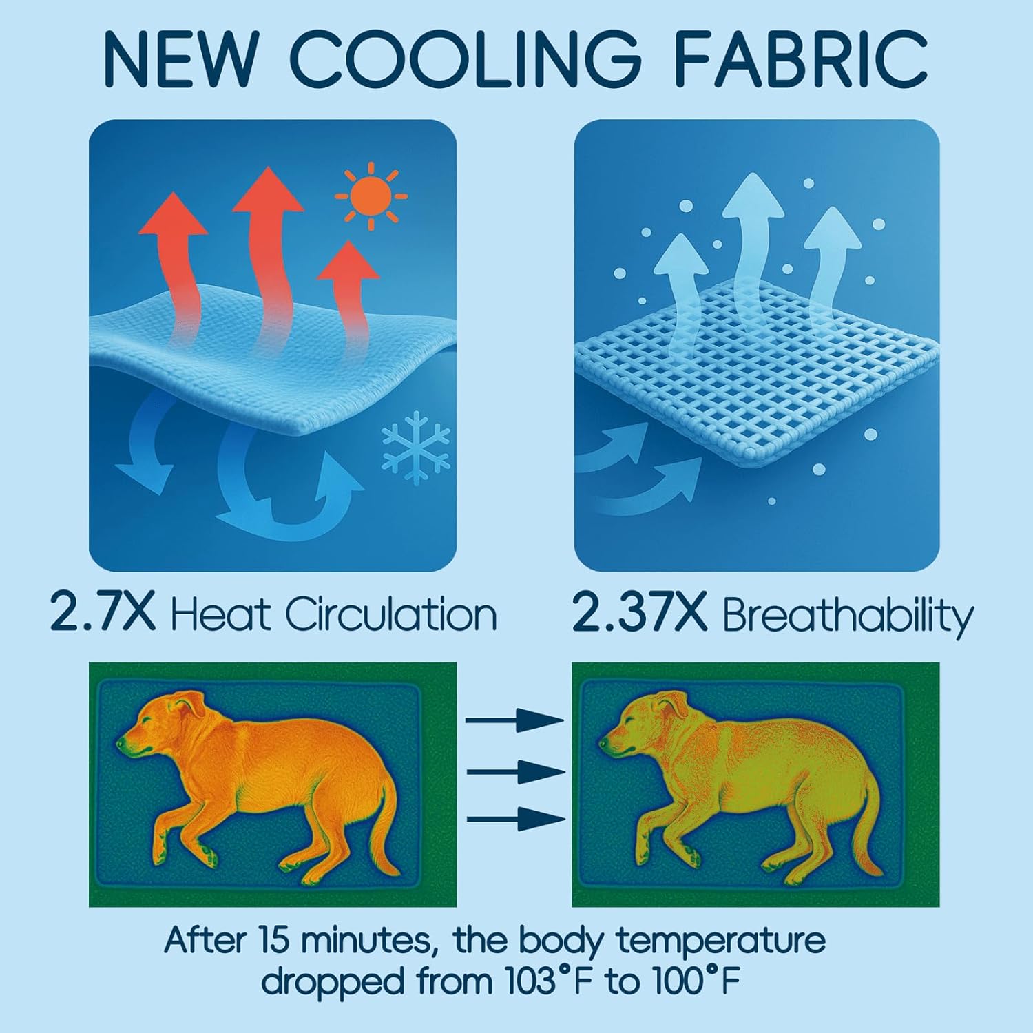 • The Ultimate Cooling Pad for Dog: Crafted from natural, breathable cooling fabric, this dog cooling mat efficiently regulates your pet's body temperature. The water-filled design absorbs heat, delivering long-lasting relief to prevent overheating and dehydration-perfect for hot days and outdoor adventures.