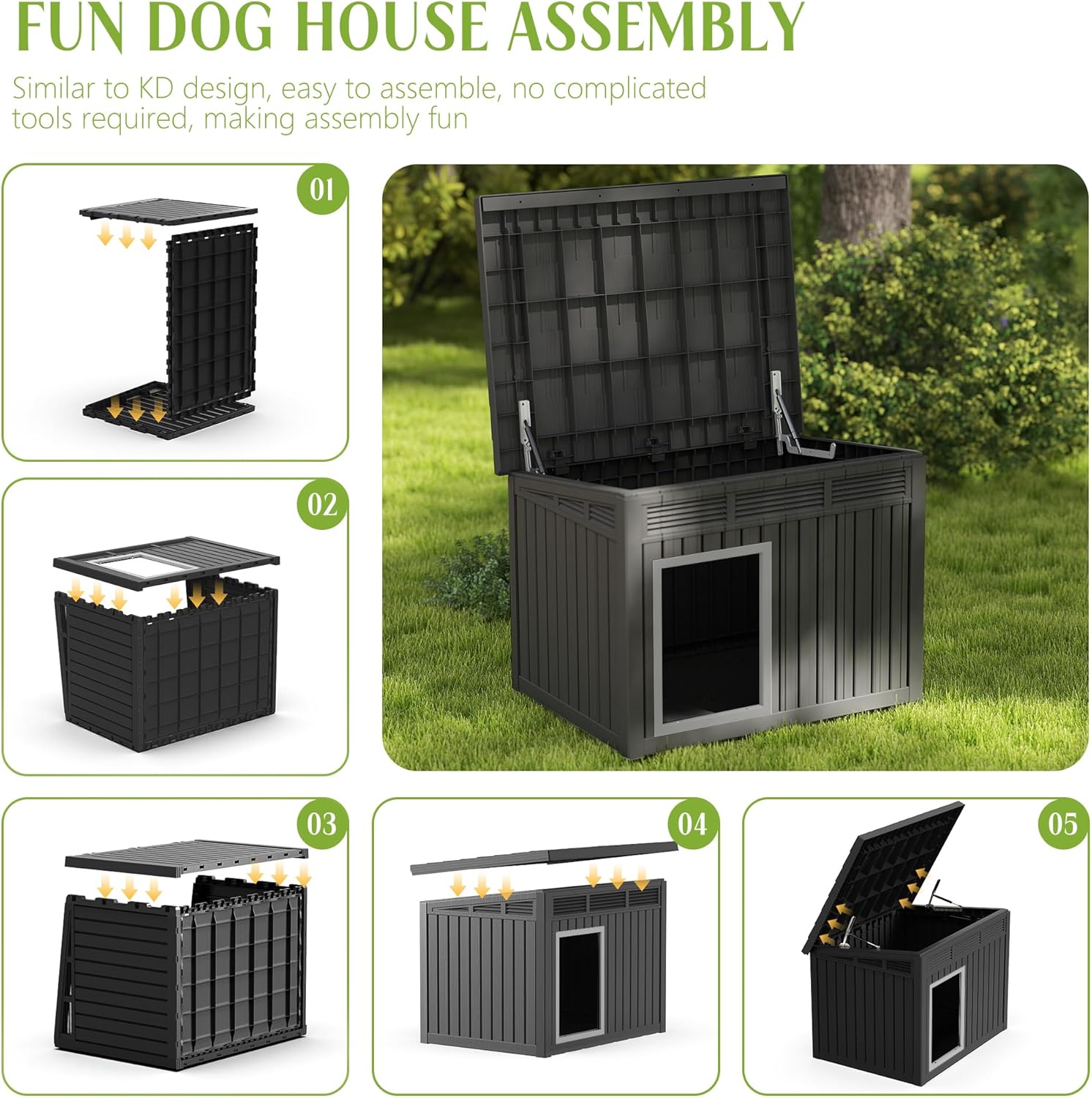 - EASY TO ASSEMBLE: To improve the shopping experience for our customers, our dog houses are simplified to assemble. You don't need to use complicated tools and it comes with detailed assembly instructions so you can quickly set up your dog's new home.
