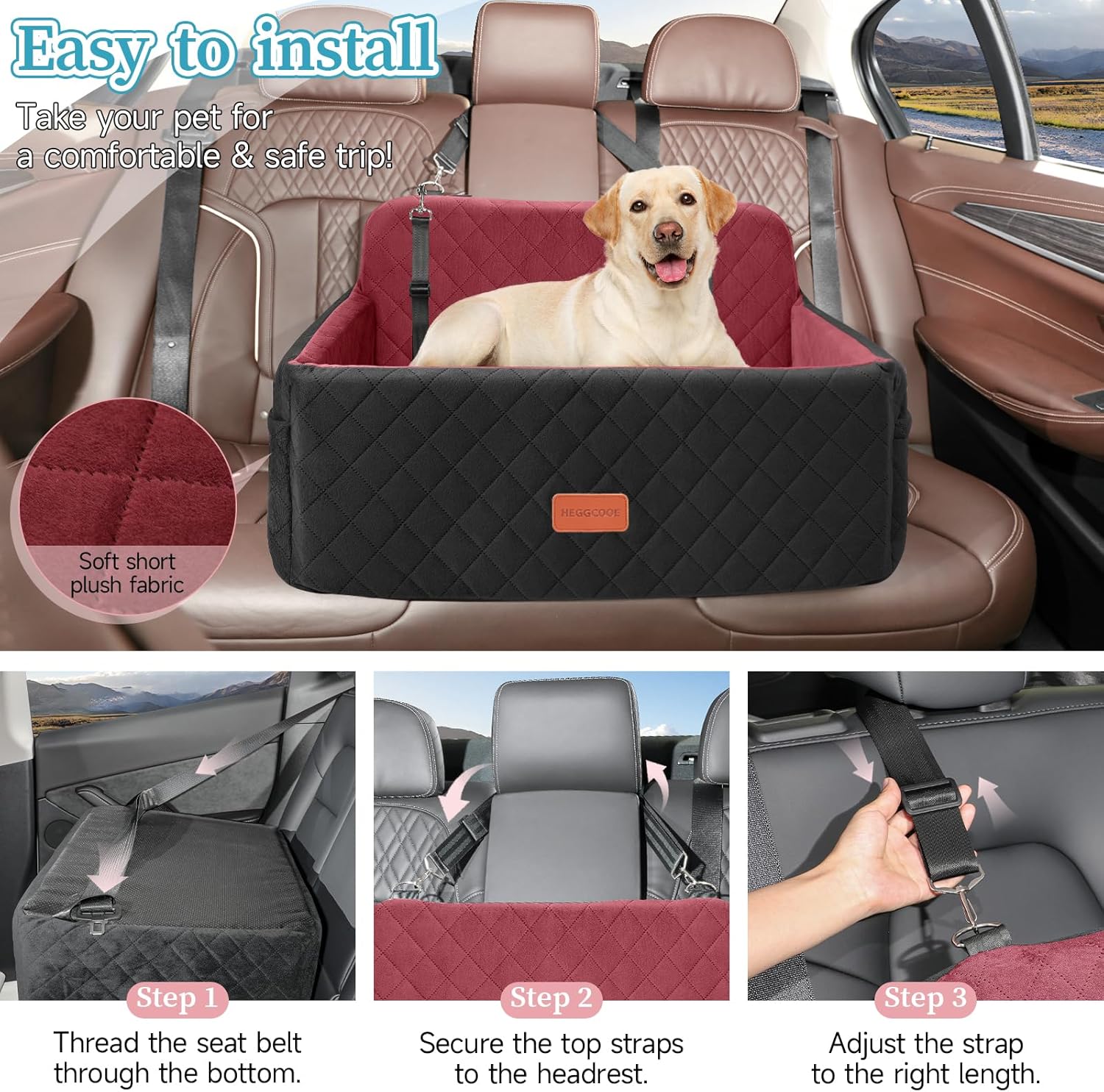 Dog Car Seat for Medium/Large Dogs, Pet Booster Seat for Under 55 lbs or 2 Small Dogs, Detachable & Washable Dog Car Bed for Backseat with 2 Safety Leashes (Blcak/red)