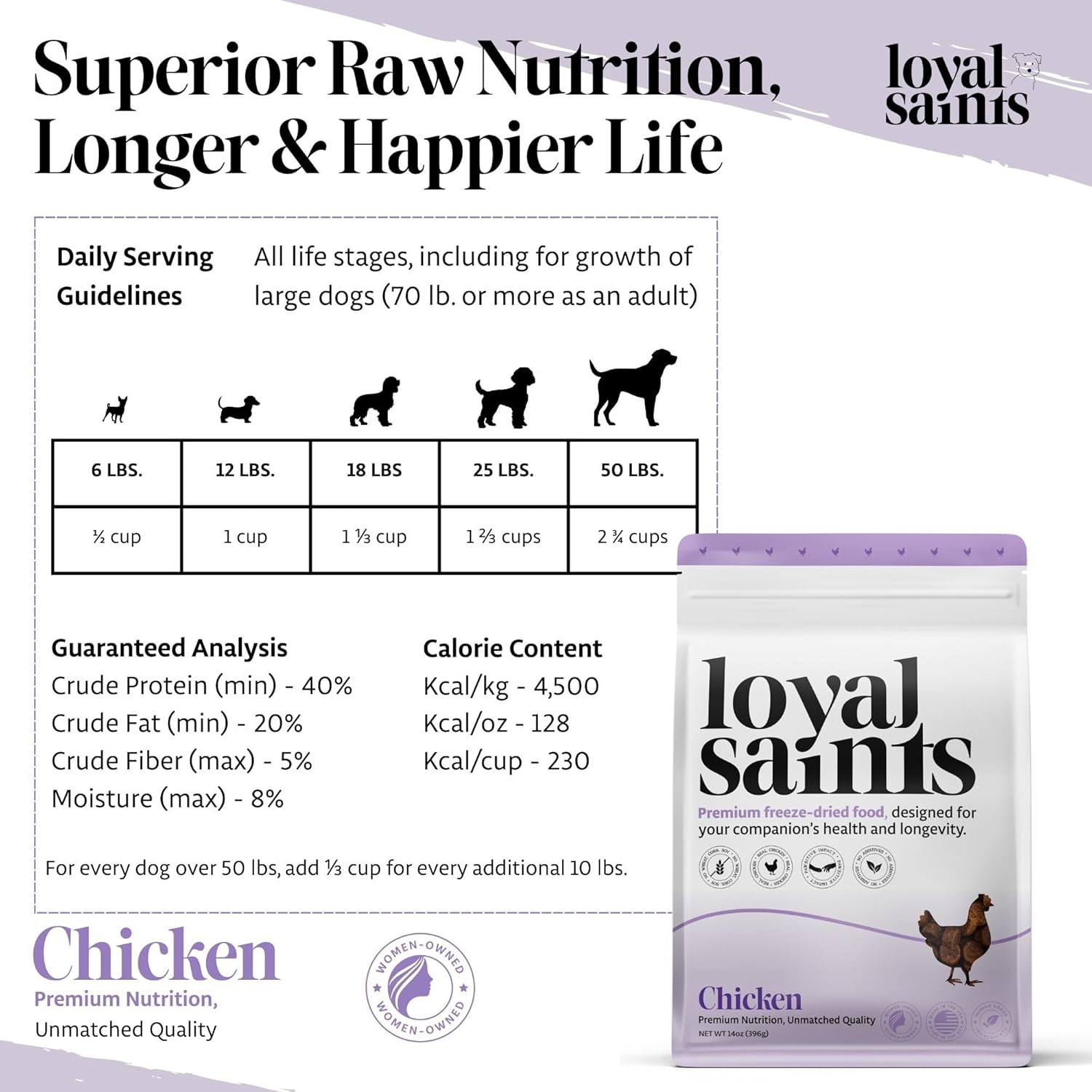Freeze Dried Raw Dog Food - Premium Chicken Flavor with High Protein & Grain Free Dog Food for Small or Large Breeds and Picky Eaters - Versatile as Meal Topper, Pet Snack & Treats, 14 Oz