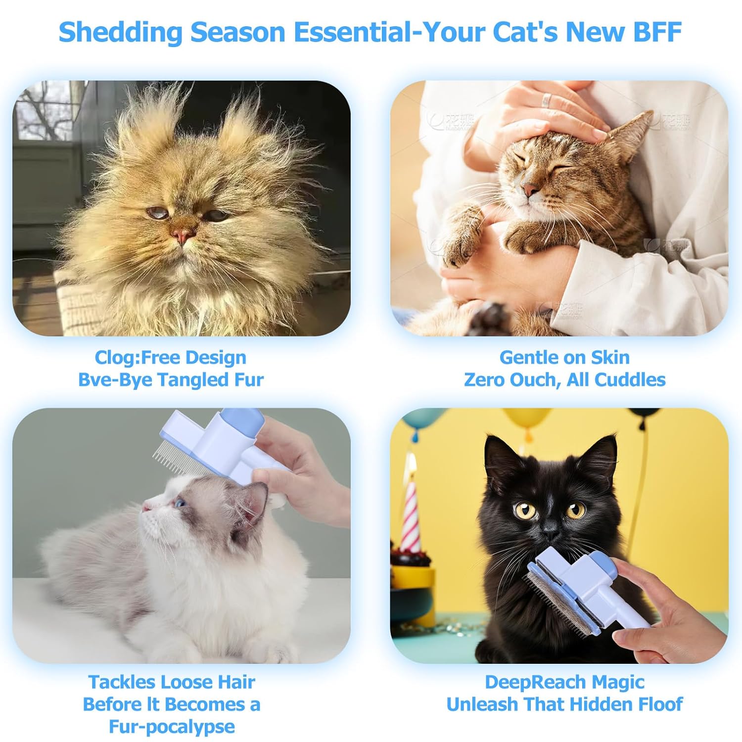 - 【Pet Hair Removal Made Easy】This innovative pet hair removal tool features long and short stainless steel teeth, making it an ideal dematting comb for cats. It effortlessly captures and lifts away unwanted hair, reducing shedding and promoting a healthier coat.