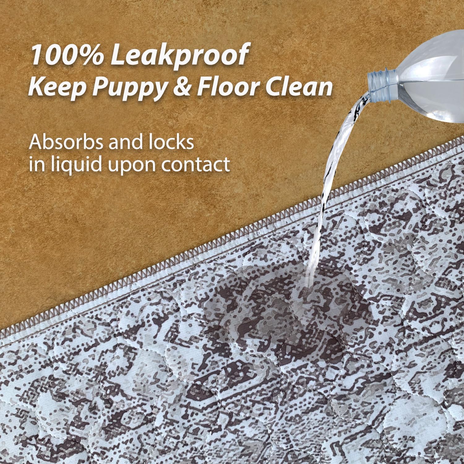 nunubaby Washable Pee Pads for Dogs, Stylish, Non-Slip and Leak-Proof Pee Pads. Reusable Potty Pads for Dogs for Crates and Floors.(Brown/Geo, 36" x36")