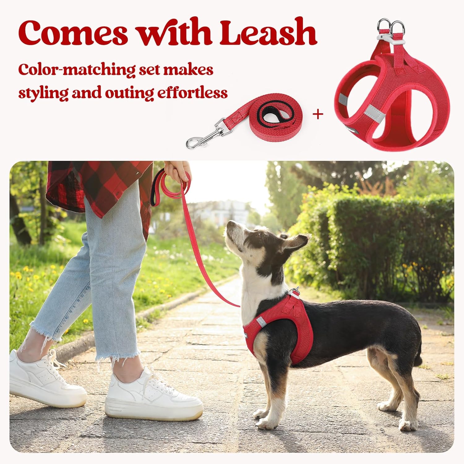 rabbitgoo Dog Harness Small Medium Sized and Leash Set, Step in Soft Light Puppy Vest, Breathable Mesh Pet Harness, Reflective for Safe Easy Walking, Red L
