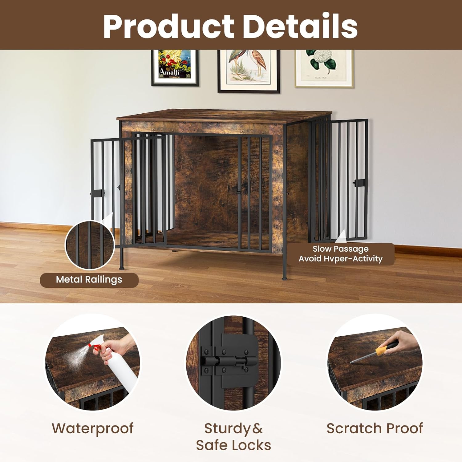 - Furniture-Style Dog Crate Table: The long rustic wood top turns the unit into a 78-inch console or TV stand that holds lamps, plants, books and more. It blends with modern, farmhouse or industrial dΓ©cor, saving floor space by combining storage and a stylish dog cage furniture piece.