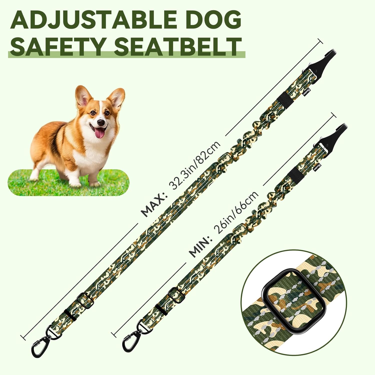 Pawaboo Dog Seatbelt for Car, 3-in-1 Dog Seat Belt Bungee, Shockproof Dogs Tether with Buckle&Hook Latch, Adjustable Reflective Dogs Cars Harness Leash with 360° Lockable Buckle, Army Green Camouflage