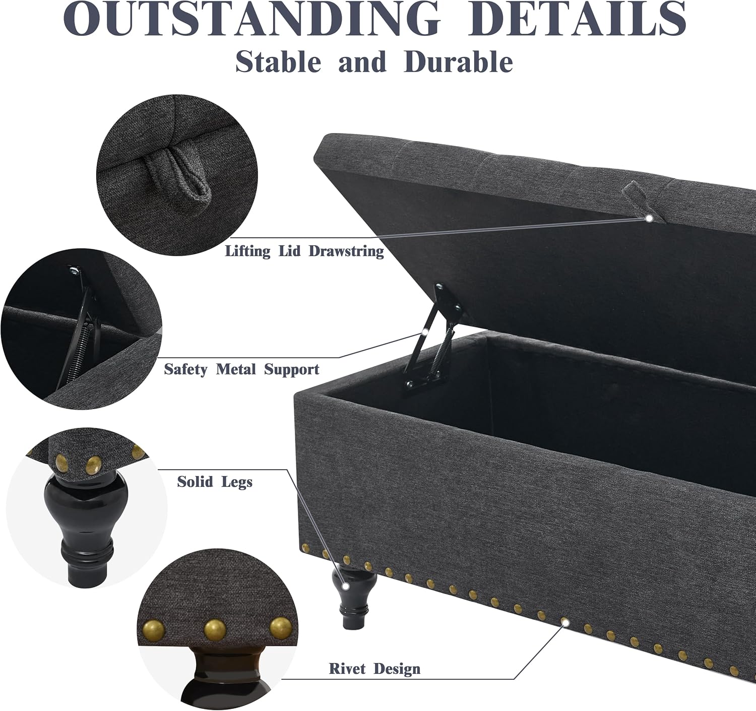 Mangodan51” Linen End of Bed Storage Bench, Tufetd Upholstered Storage Ottoman Bench with Safety Hinge, 330 lb Large Ottoman with Storages for Living Room, Entryway & Bedroom, Window Benches, Grey