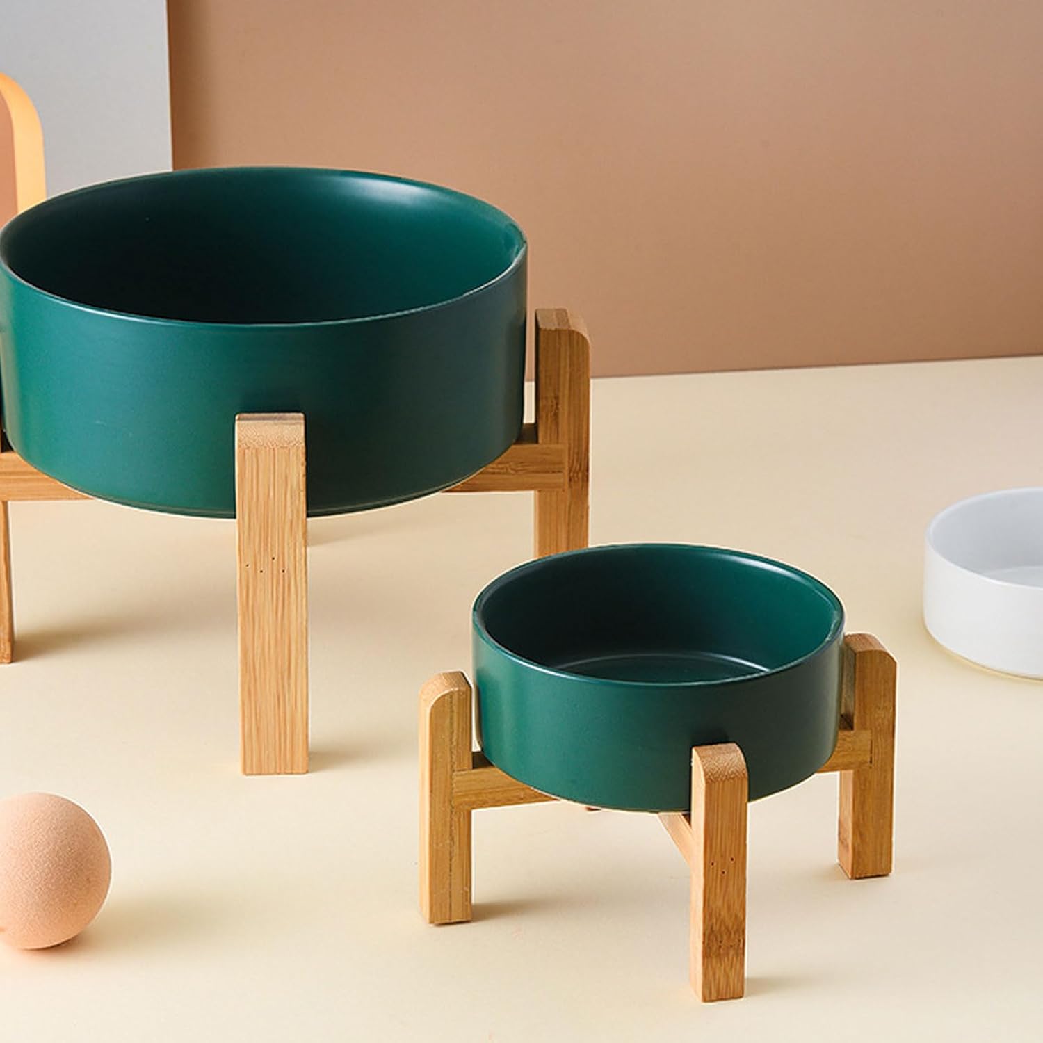 • NON SLIP WOOD STAND -You can get two different heights by flipping the bamboo stand,the elevated cat bowls are perfect for cats and small size dogs from different stages of childhood to adulthood, The wood stand on the bowls stopping ceramic cat dog bowl from sliding around, Keeps pet food and water in the bowls.