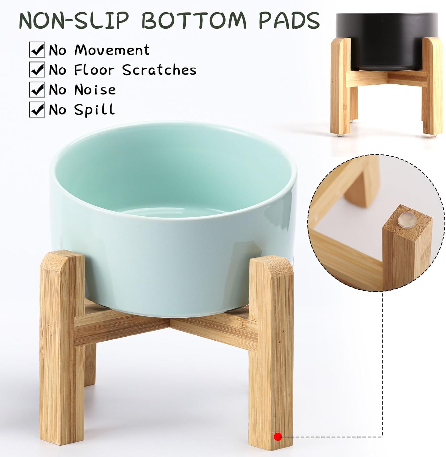• NON SLIP WOOD STAND -You can get two different heights by flipping the bamboo stand,the elevated medium size ceramic pet bowls are perfect for small and medium dogs from different stages of childhood to adulthood, The wood stand on the bowls stopping ceramic dog bowl from sliding around, Keeps pet food and water in the bowls.
