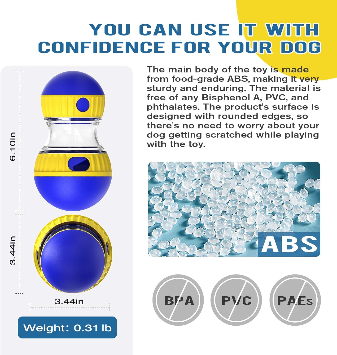 • [Treat Distribution] Our food slow dispenser has differently sized spheres at both ends. As dogs push the toy, it moves within a fixed area, allowing dogs to continuously chase and play with it. During movement, food is dispensed from the food holes on both sides of the toy.