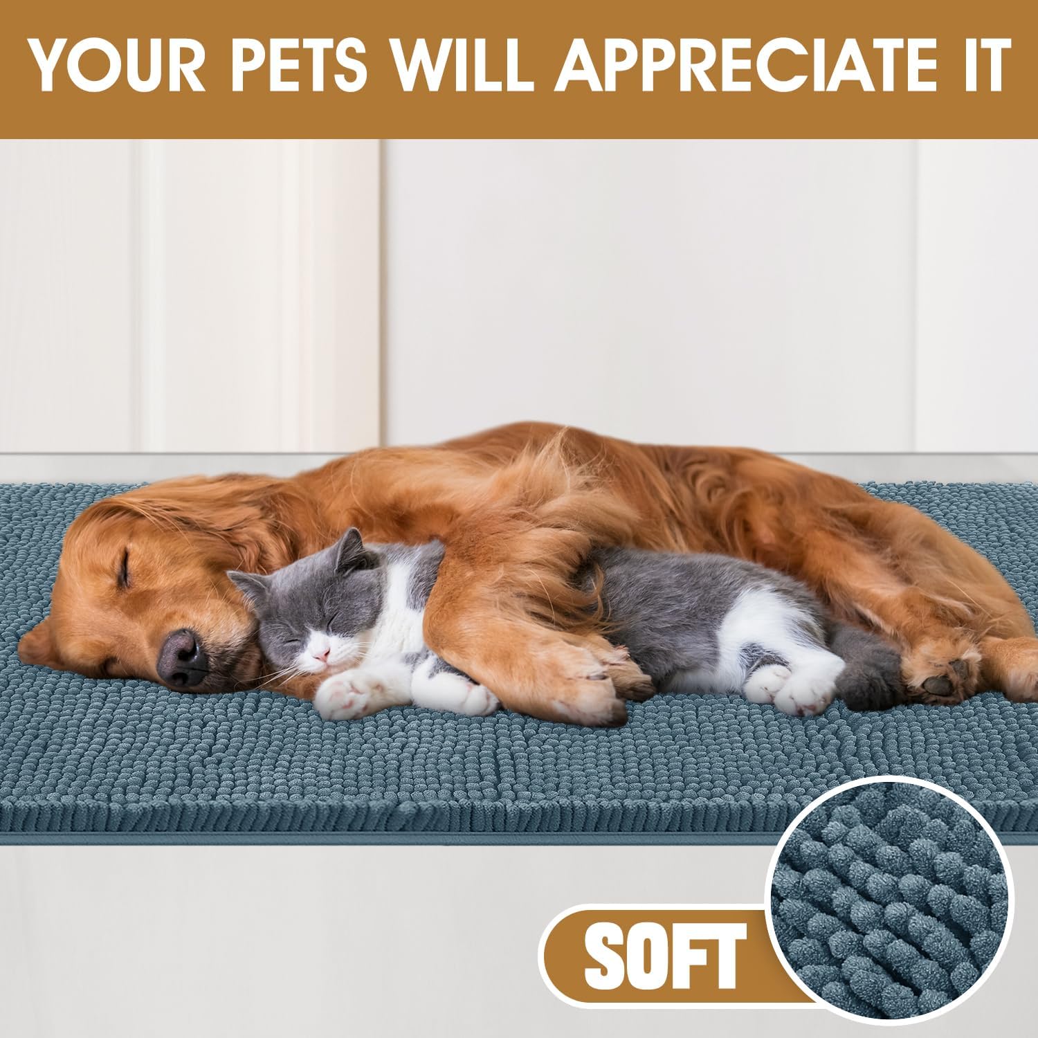 - Soft And Comfort: This muddy mats for dogs is crafted from premium chenille—gentle and comforting with every step. For your furry friend, the pet mat is a warm haven too: on chilly floors, the soft pile locks in extra warmth, letting them curl up comfortably.