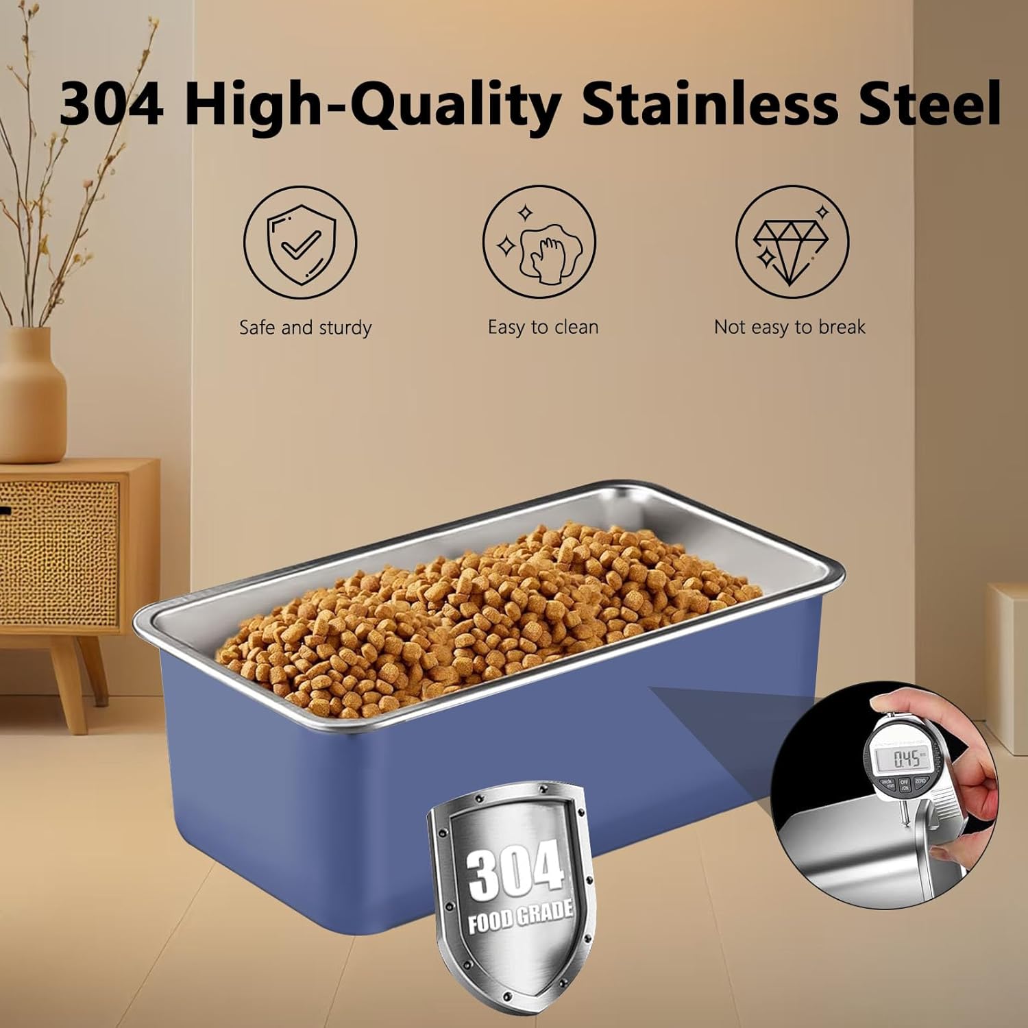 • 304 Stainless Steel Materials: Our dog food storage containers are made of 304 stainless steel, which is more durable and drop-resistant than ordinary plastic food storage buckets. Come with a stainless steel scoop is more durable than the plastic scoop, not easy to damage, and can be used for a long time.Can maximize the freshness of dry food and snacks, the stainless steel surface is not easy to adhere to food debris, providing you with a clean and orderly food storage area
