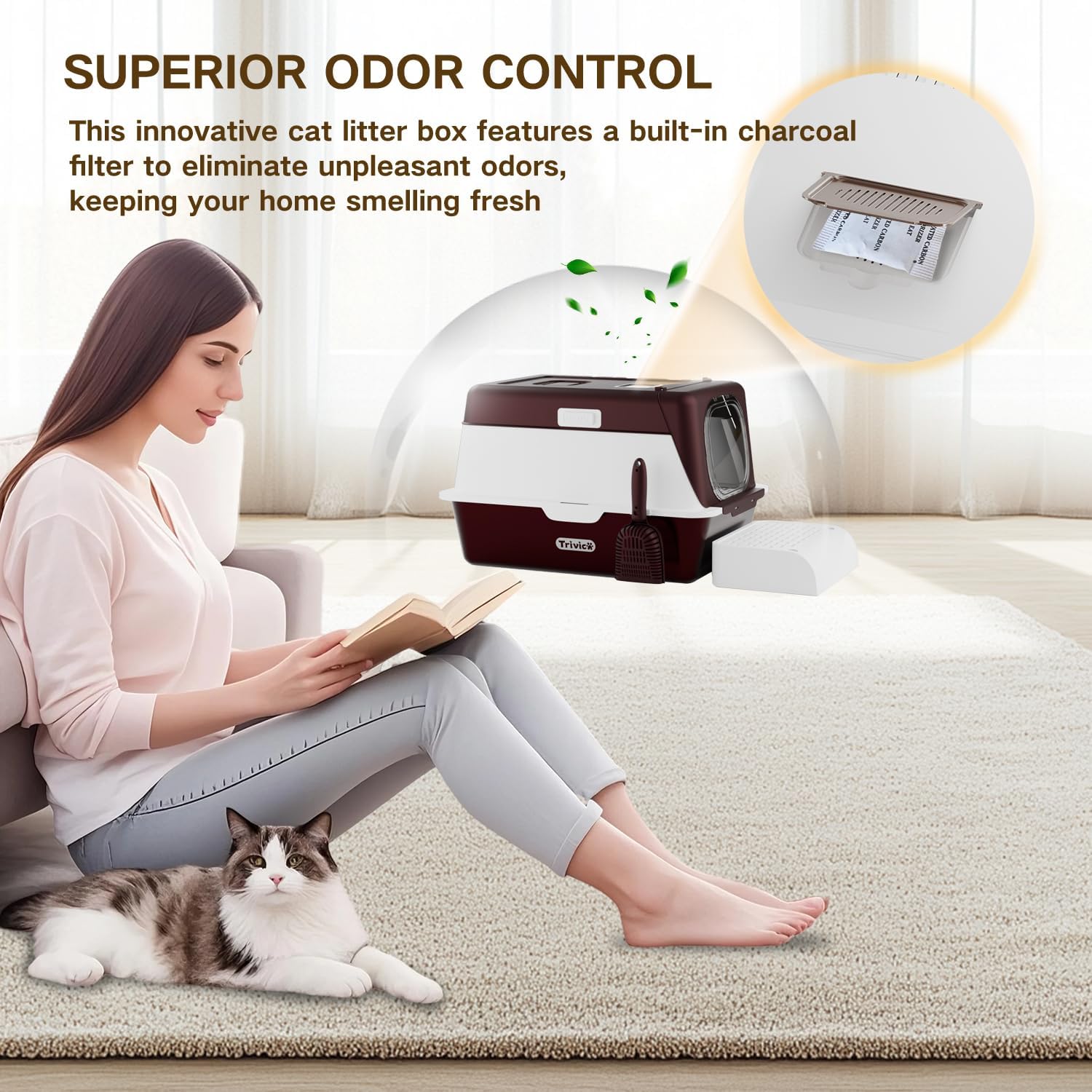 • Versatile Design – Functions as either a semi-enclosed or fully enclosed litter box, featuring a deodorizing filter to minimize odor and moisture buildup.