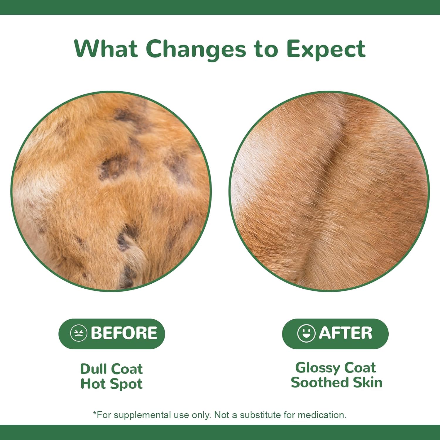 - Vet Formulated with OMEGA 3. OMEGA 3 can make your dog's coat shiny and help dog itching skin relief. It can also support heart health by reducing triglycerides and blood pressure. They are crucial for brain function and development, help fight inflammation throughout the body, and promote eye health by supporting the retina.