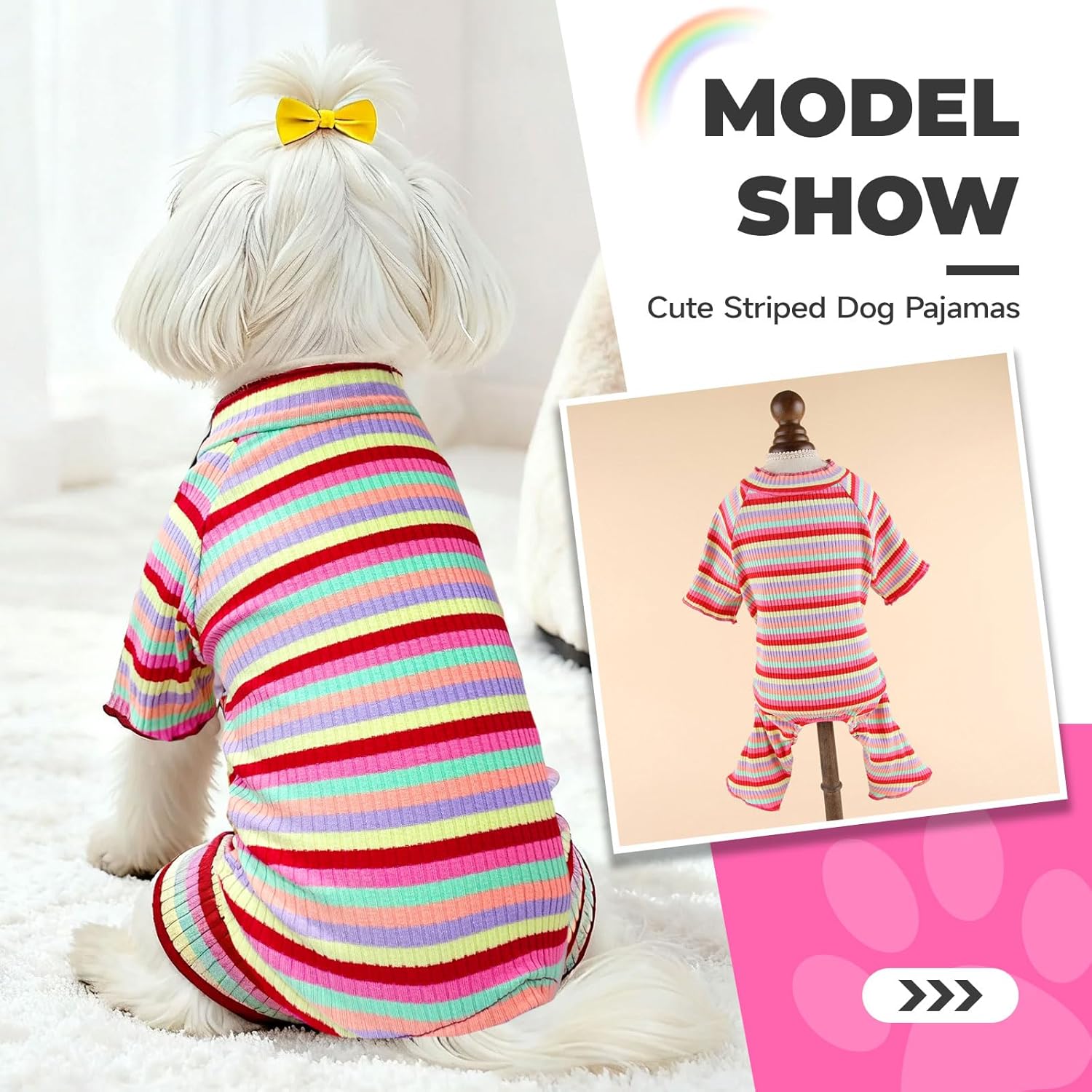 BAEJMJK Striped Dog Pajamas Stretchy Cute Four-Legged Boy Girl Dog Clothes with Sleeves Comfortable Dogs Jumpsuit Colorful Pet Puppy Outfits Apparel for Small Medium Dogs Cats(Red,X-Large)