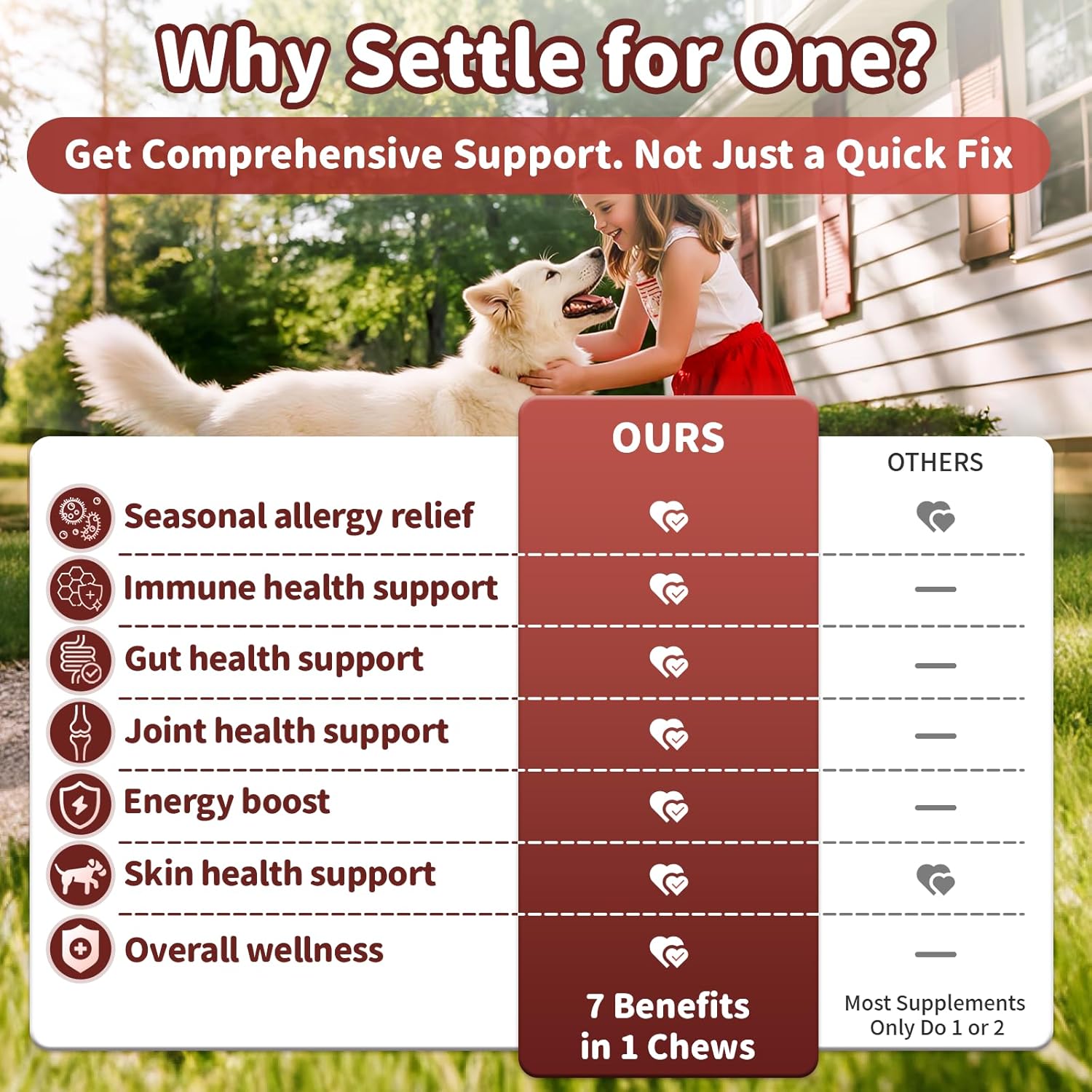 - Tasty & Safe & Natural Chews: Your dog will love our immune and allergy soft chews. Delicious, natural-flavored make wellness a joyful part of your dog's day! And they're a safe, worry-free choice for your dog's long-term health and vitality