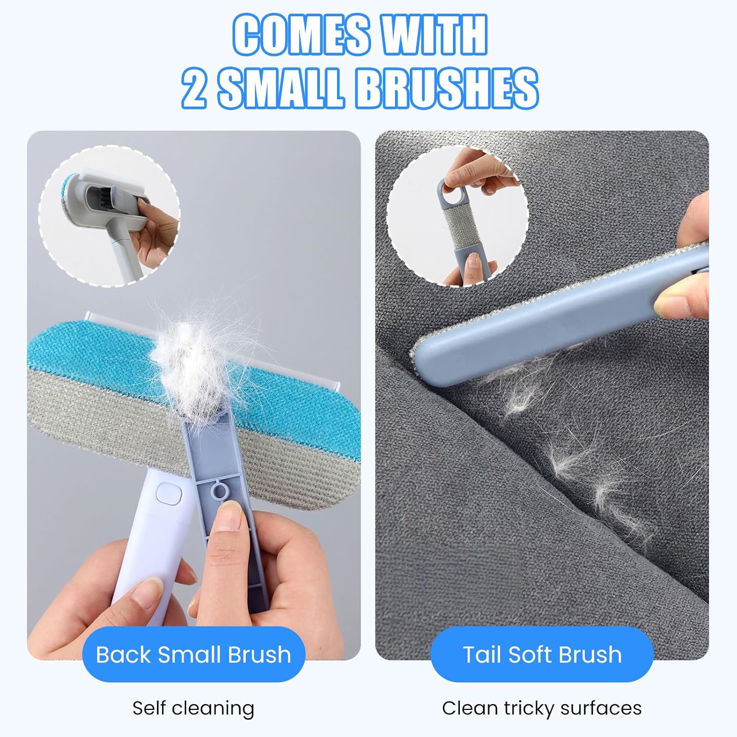 - 4-IN-1 VERSATILE CLEANING TOOL: This all-in-one pet hair removal tool combines a pet hair remover, window scraper, and 2 detail cleaning brushes. Save money and drawer space—great for zipping through couch hair, car seat lint, or RV window smudges when you’re busy.