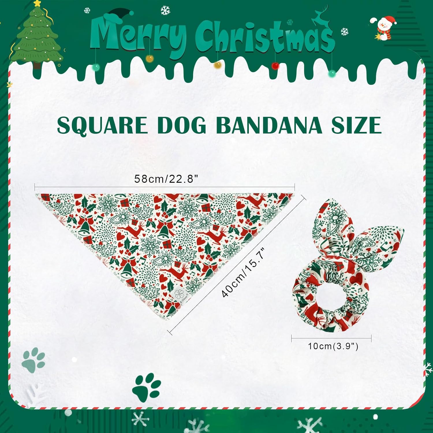 • Xmas Dog Bandanas Size: 20.8x13x3inchs (53cm *33cm *33cm).The adjustable cute dog bandanas fit pet neck size up to 14inchs (36cm).You can roll the dog bibs a couple of times to fit your dog if itโ€™s too large. Please measure your dogโ€™s neck before buying.Red Green scrunchies is one size fits all.