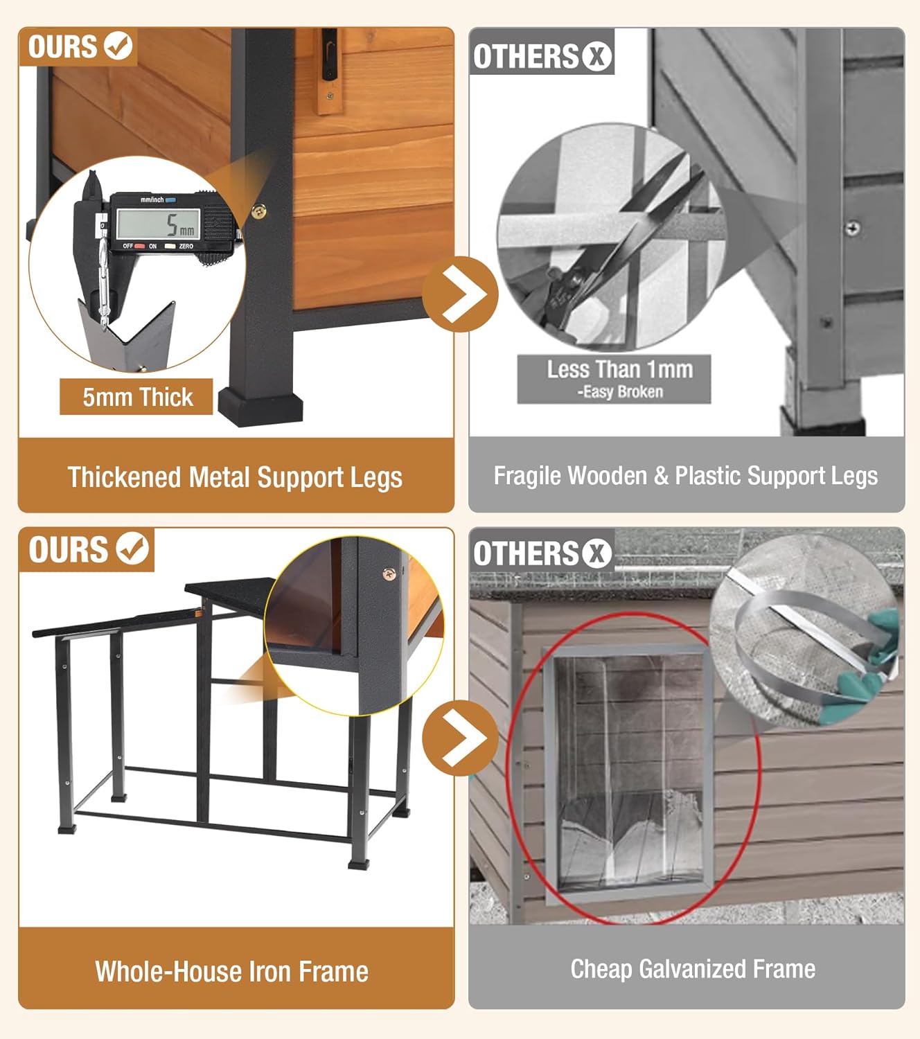 - ππππ-πππππππ πππππ π ππππ & π ππ ππππ - Boasting a 16mm-wide full iron frame and 100% fir wood with waterproof paint, this insulated dog house resists chewing and weather damage. Thickened 5mm metal legs block moisture and boost stability