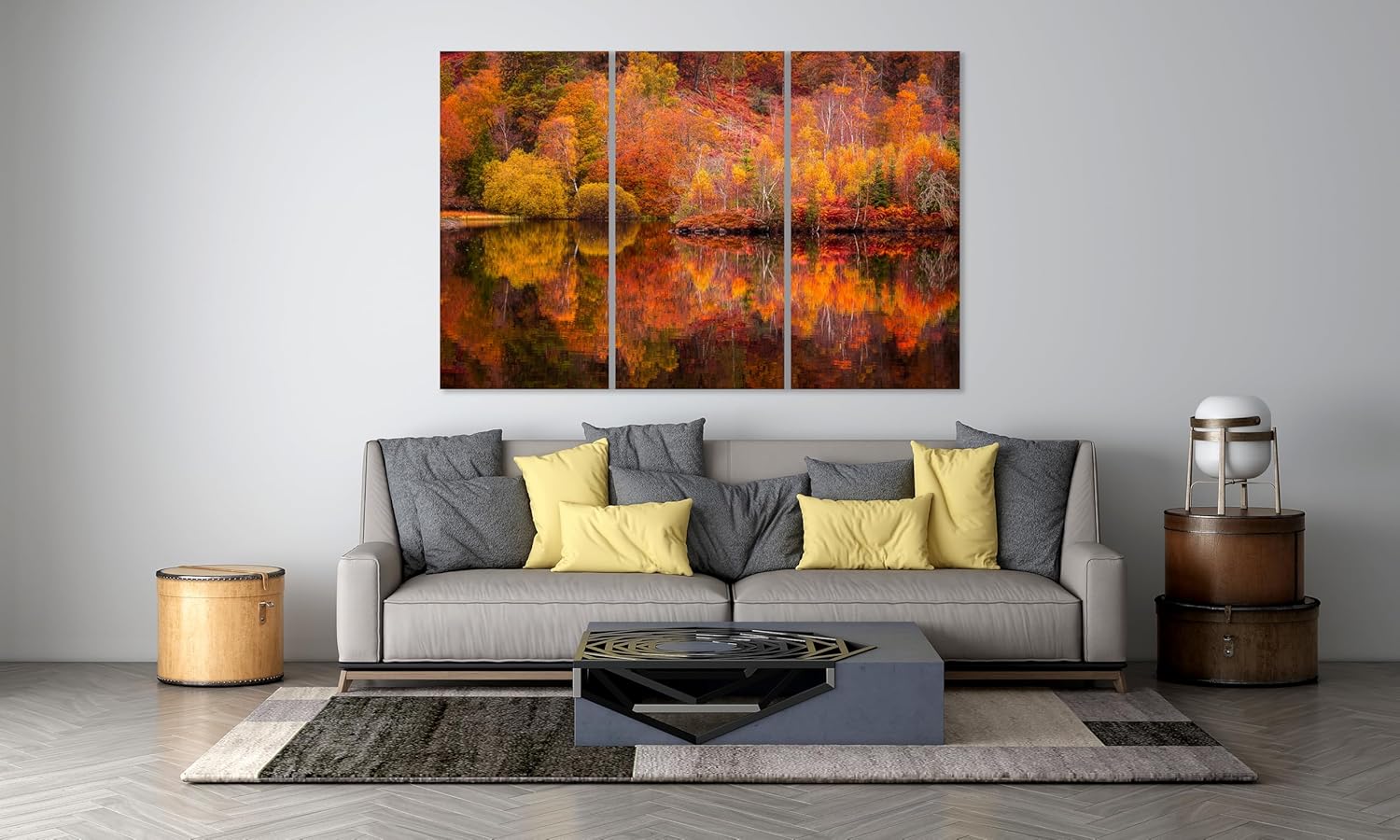 Nature Wall Art Prints - Ocean Forest Mountain Lake Canvas Landscapes - Small to Extra Large Living Room Bedroom Kitchen Bathroom Décor (Autumn Forest with Lake, 47L" x 71W" - 3 panels)