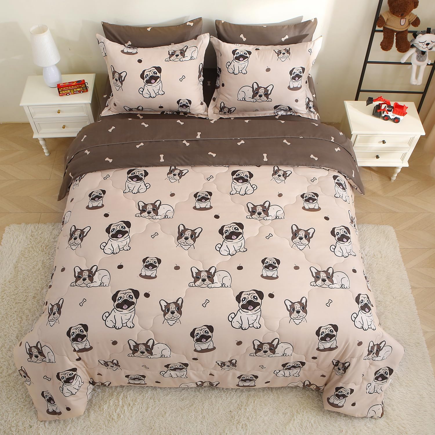 - 7 Piece Kids Comforter Set Included : 1 dog Twin comforter 68 inch x 86 inch + 2 standard pillowcases 20 inch x 26 inch - 1 twin size fitted sheet 39 inch x 75 inch - 1 twin size flat sheet 66 inch x 96 inch - 2 standard pillowcase 20 inch x 26 inch.