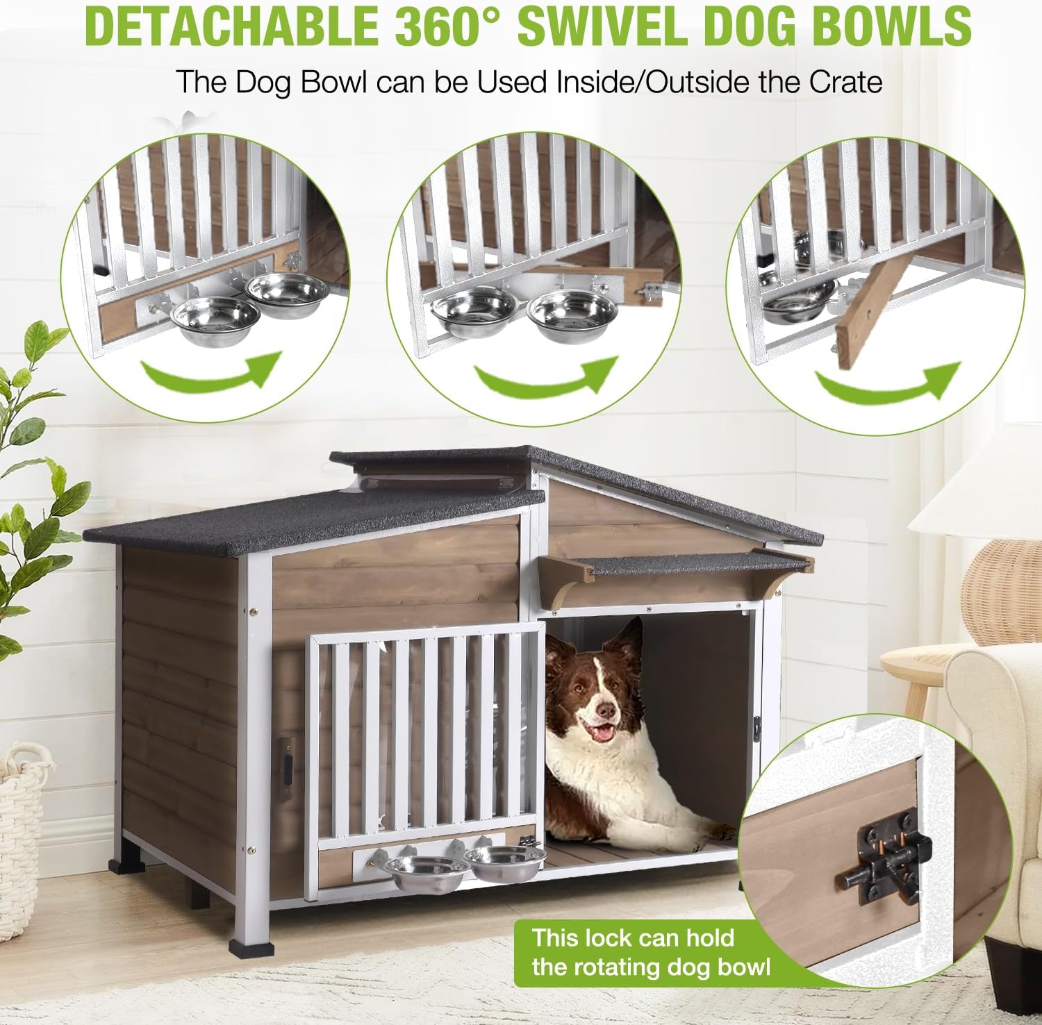 - ANTI-CHEWING METAL FRAME Our dog house outdoor is built with solid wood and metal frame. The upgraded metal frame is designed to prevent pets from chewing and destroying.Never worrying about your pup damaging their shelter – this dog house is built to withstand their natural instincts