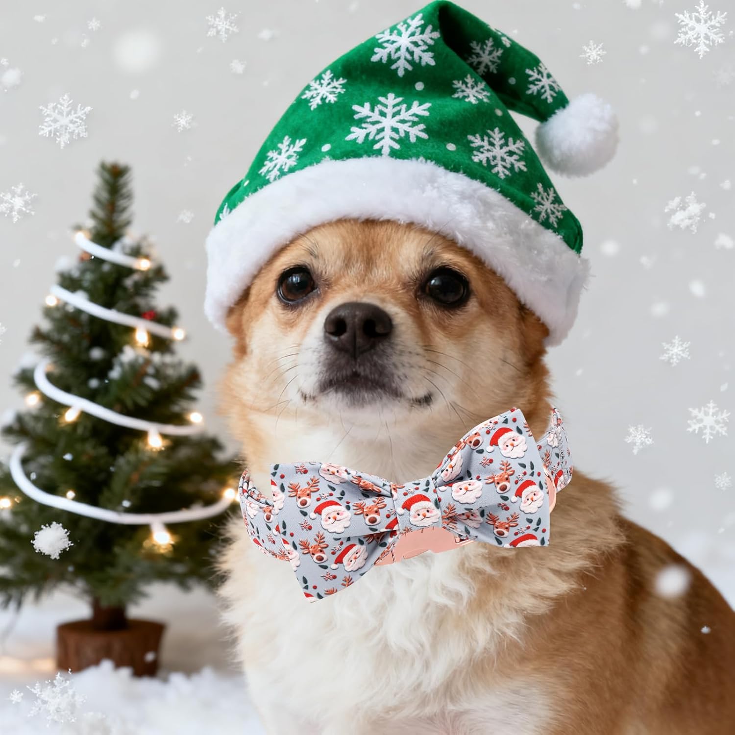 Unique Style Paws Christmas Dog Collar with Bow Elk Christmas Man Cotton Puppy Collars for Small Medium Large Dogs