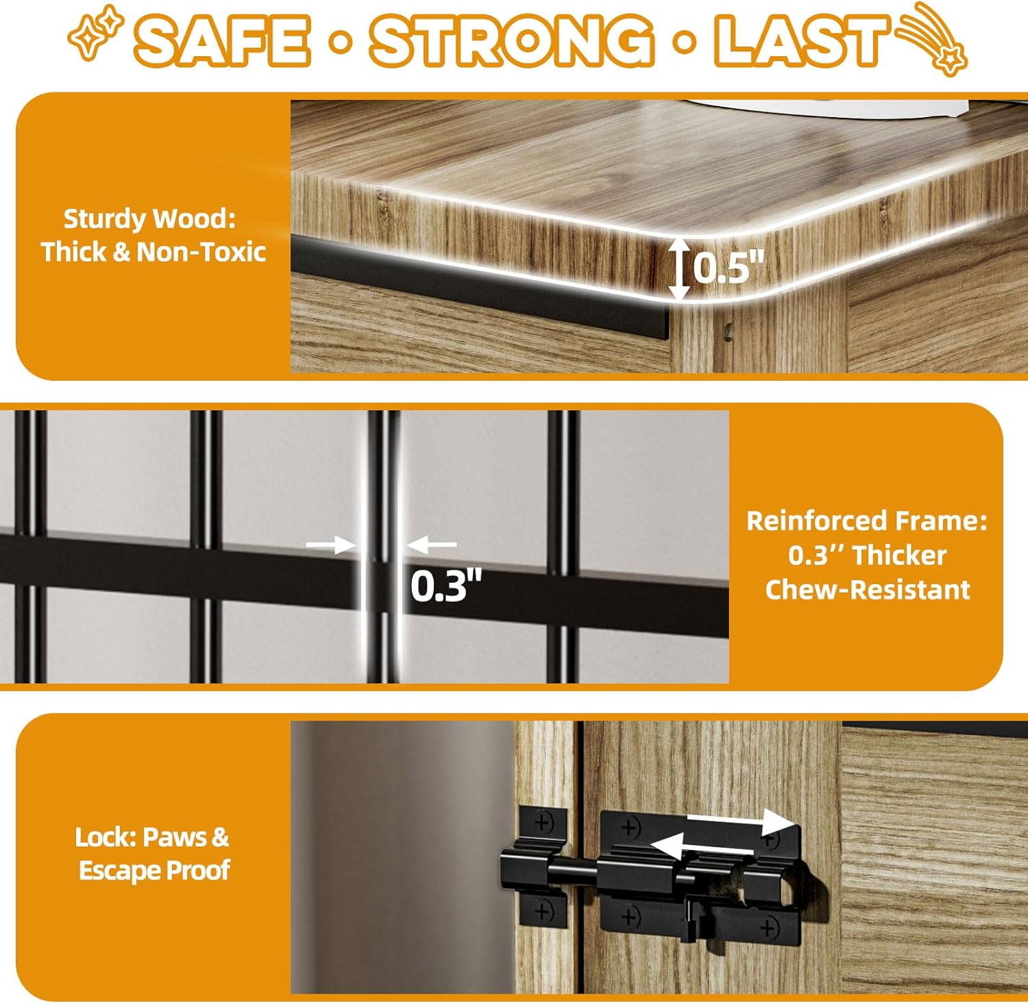 • Space-Saving Double Door: Features an innovative "lift-and-push" front door that opens upward, saving space and preventing accidents. Double door design offers easy access for cleaning, placing beds, or helping your pet in and out